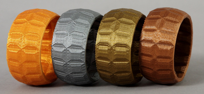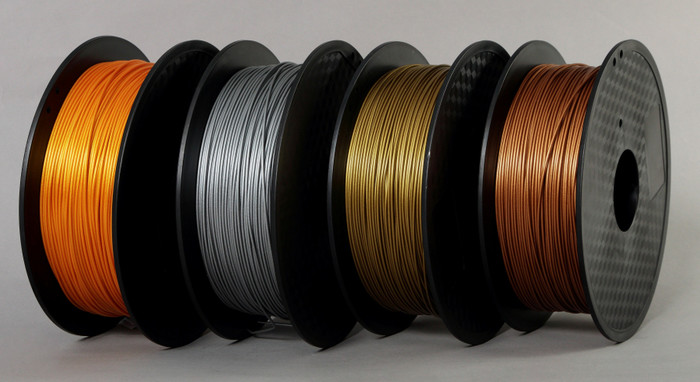 采用0.013mm细度的银线金属粉末与PLA粘合成线材,基于成本考虑,并不是真正的“金”和“银”,而是采用了几种氧化金属(专利配方,不便公布)而制成。与荷兰ColorFabb公司的金属耗材不同,这款金属型耗材,打印模型后,不需要找专业的抛光打磨公司去做后期处理,就能获得金属效果,具有金属光泽及质感。而且能通用在一般的桌面打印机上,适合新手使用。