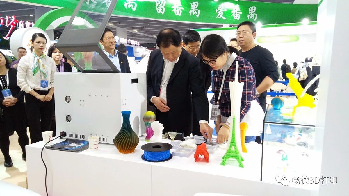 广州市番禺区人民政府-区委书记何汝诚带领调研组,走访中国海交会——畅德3D打印科技创新成果展位,对畅德3D打印技术设备给予高度评价及其发展指导方针。