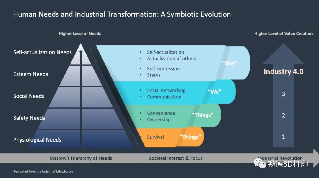 3D打印作为一种新型的制造技术,它可以通过数字设计逐层构造物体,实现按需生产和复杂的几何形状,从而满足了人们对个性化、创造力和自我实现的需求。